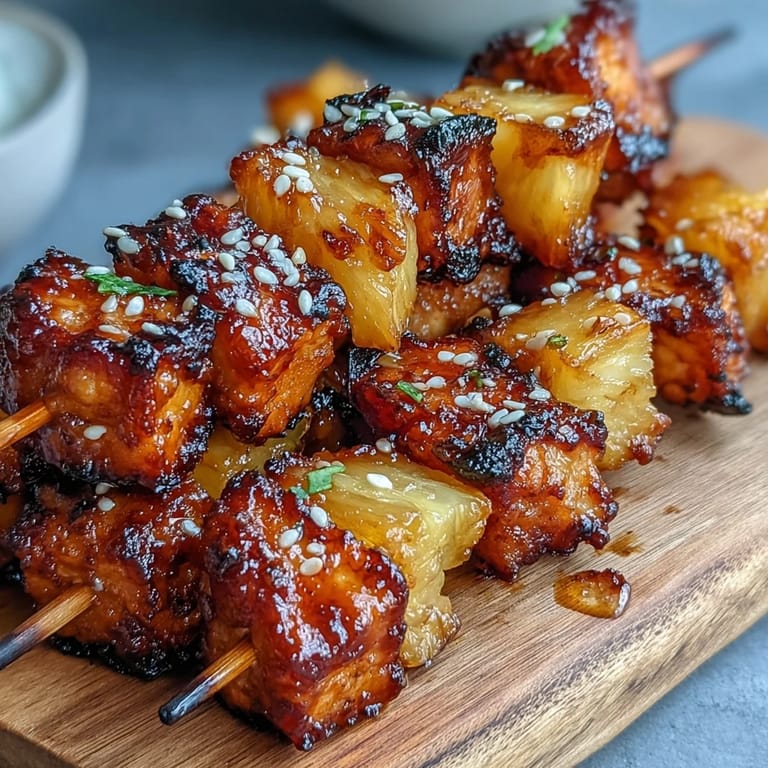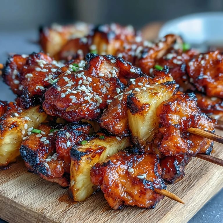 I've made these with firm tofu for vegetarian friends, and honestly, it works because the marinade does all the heavy lifting. Canned pineapple works when you're short on time, just drain it really well so you don't end up with soggy skewers. If you want heat, add a pinch of chili flakes to the marinade and watch people's eyes light up when they bite into it.