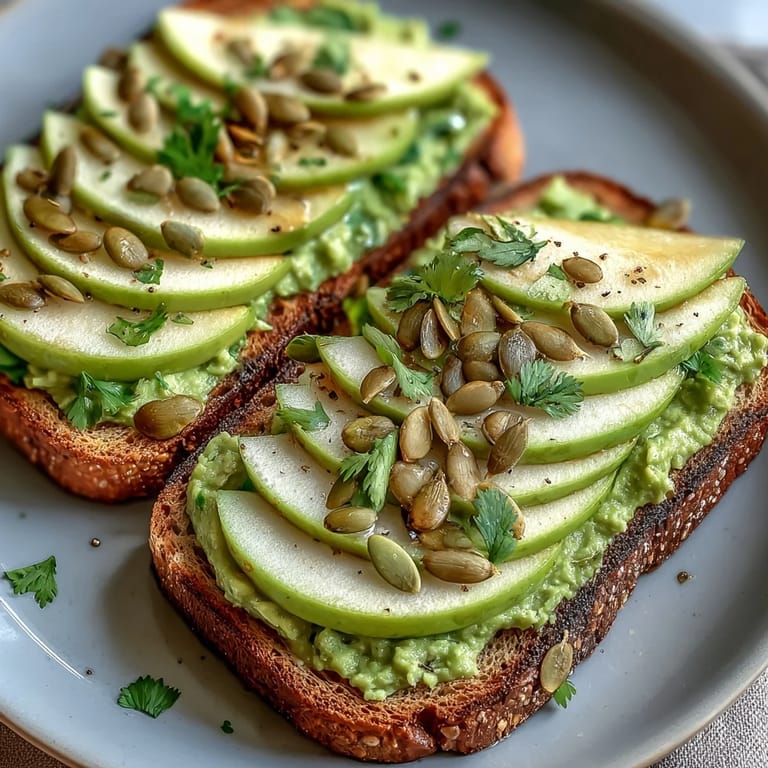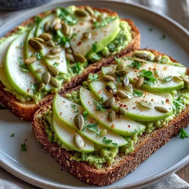 Save One morning, I was standing at the kitchen counter with nothing but a half-ripe avocado and some leftover whole grain bread, wondering if breakfast could be more than just routine. My roommate wandered in, caught the smell of toast, and suddenly we were slicing green apples thin enough to see the light through them, sprinkling pumpkin seeds like we were seasoning something precious. That simple moment taught me that the best breakfasts aren't complicated—they're just about choosing ingredients that actually taste good together.