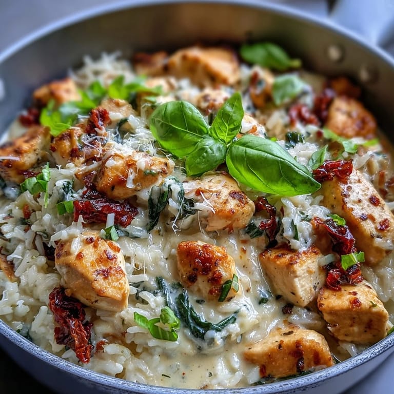 Save There's something about a one-pan dinner that transforms a hectic weeknight into something almost elegant, and this creamy Tuscan chicken landed in my kitchen during a moment when I needed comfort without the fuss. A friend had mentioned how she'd made something similar with sun-dried tomatoes and cream, and I became oddly obsessed with recreating it, tweaking it until it felt unmistakably like home in a bowl. The first time I nailed the balance between the garlicky sauce and tender rice, my partner actually set down his phone, and I knew I'd stumbled onto something worth keeping.