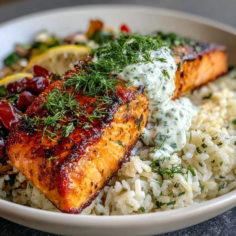 Save The first time someone I cooked for described this bowl as a symphony of textures, I realized how often we rush through eating and never really notice the small details. This dish demands that you actually pay attention—the crunch of the rice, the softness of the salmon, the cool brightness of that yogurt hitting your tongue all at once.
