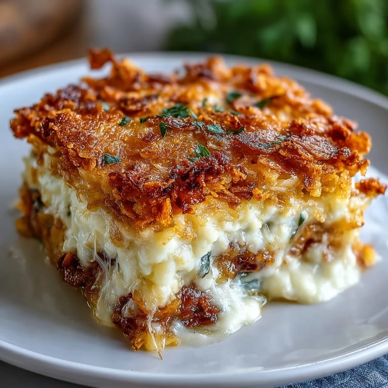 This hearty casserole pairs beautifully with a crisp green salad dressed in a light vinaigrette to balance the richness of the dish. Steamed green beans or roasted Brussels sprouts make excellent vegetable sides. For beverages, a glass of Chardonnay complements the creamy, cheesy flavors perfectly, while a light lager or amber ale works well for beer lovers. Serve family-style directly from the baking dish for a casual, inviting presentation, garnishing with fresh chopped parsley or chives for a pop of color. Leftovers reheat beautifully, making this an excellent make-ahead option for meal prep.