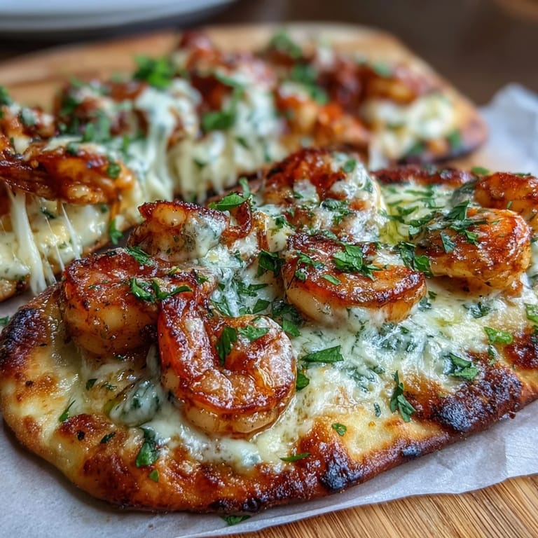 Save My neighbor knocked on the door one Thursday evening with a bag of beautiful spot prawns from the market, asking if I wanted them before they went bad. I had garlic naan in the freezer and half a ball of mozzarella, so I threw together what would become my favorite weeknight shortcut. Twenty minutes later, we were biting into something that tasted like it belonged in a fancy restaurant but required almost no fuss. That moment taught me that the best meals often come from happy accidents and good timing.