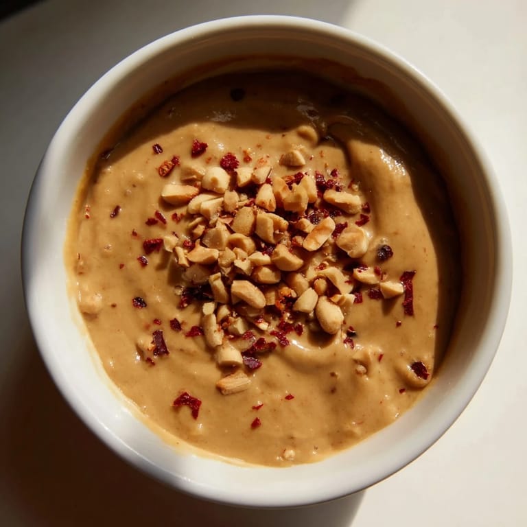 There's something meditative about stirring this sauce—the resistance of the peanut butter, the way the color shifts from tan to amber as it heats, how your spoon starts to move through something heavier and more luxurious than what you started with. It's one of those small kitchen moments where you're not fighting the ingredients but dancing with them. Pay attention to the bottom of the pan; that's where the magic happens and where things can catch if you stop paying attention.