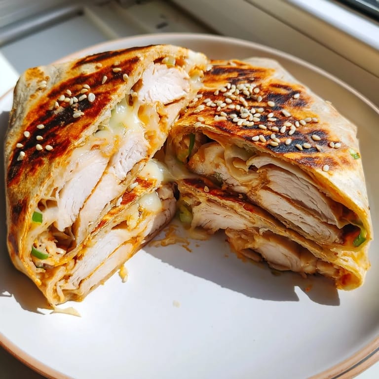 Save There's something magical about the moment a Korean BBQ marinade hits a hot skillet—the sizzle, that particular soy-and-ginger perfume filling the kitchen, the way your shoulders relax because you know dinner is about to taste incredible. I stumbled onto this wrap grilled cheese hybrid on a Tuesday night when I had leftover Korean BBQ chicken and a half-empty bag of mozzarella, and desperation became inspiration. The cheese melted into every crevice of that grilled wrap, the scallions stayed bright green and crisp, and suddenly I was eating something that felt both comfortingly familiar and genuinely exciting. It's become my go-to when I need something fast but impressive, the kind of dish that makes people ask for the recipe before they've even finished eating.