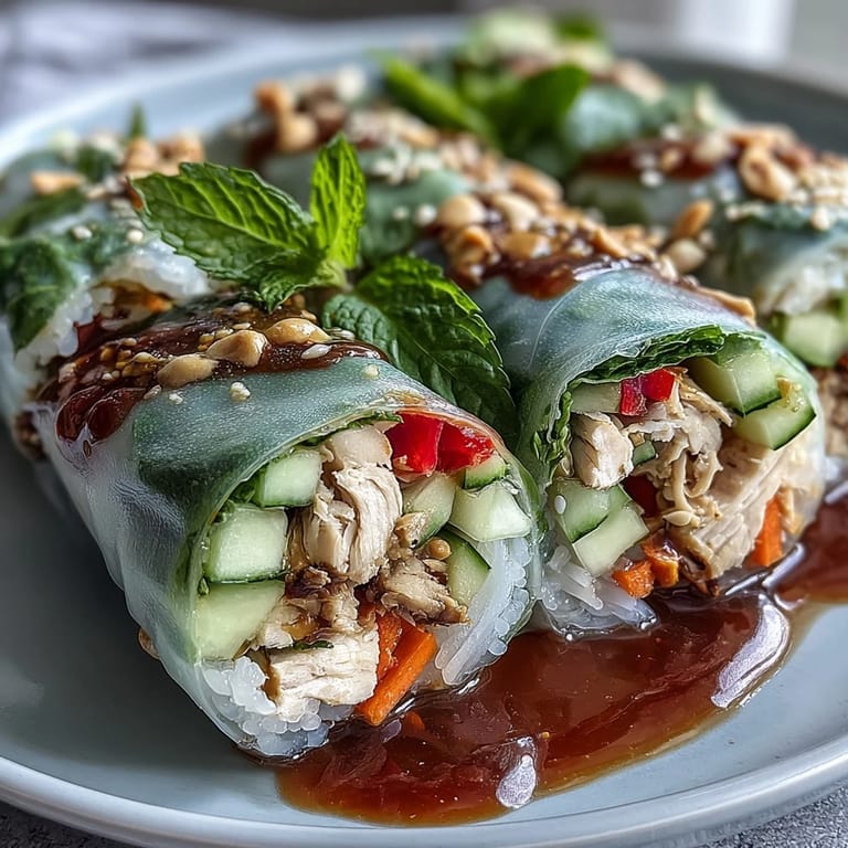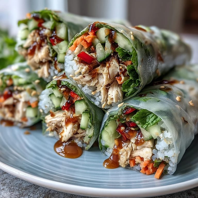 Save There's something almost meditative about assembling spring rolls on a lazy Sunday afternoon when a friend texted asking what I was making for lunch. I pulled out what I had—some leftover rotisserie chicken, a farmers market haul of vegetables still in their crisper bags, and a block of time to slow down. What started as "let me just throw something together" became this ritual of dipping, filling, and rolling that felt more intentional than any recipe I'd followed in months. The kitchen filled with the bright smell of fresh herbs, and by the time I'd finished the eighth roll, I understood why people get excited about these things.