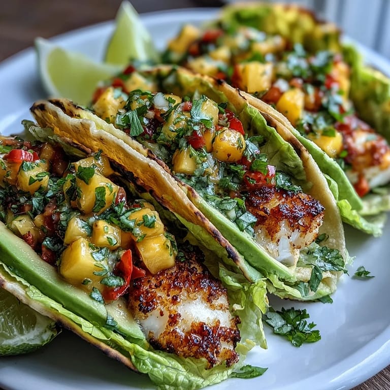 Save There's something about summer evenings that makes you crave something light and bright, and these mango salsa grilled fish tacos in lettuce shells landed on my plate at exactly the right moment. A friend mentioned she'd been eating them for lunches all week, and I was skeptical until I actually tasted one—the charred fish against the cool, juicy mango and crisp lettuce felt like eating sunshine. What started as a casual weeknight dinner became my go-to when I wanted something that felt indulgent but actually respected my body.