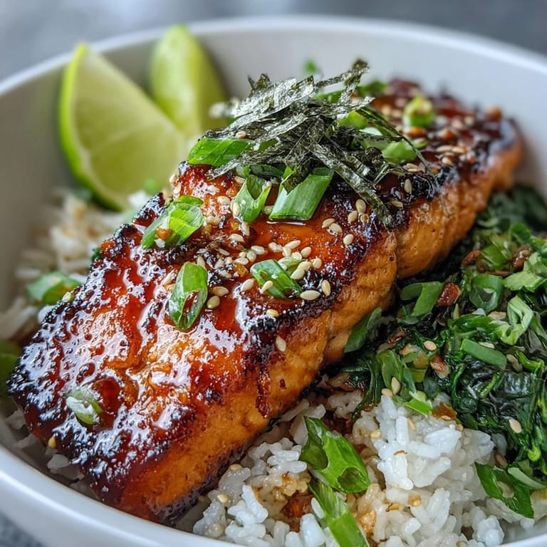 - Divide the fluffy rice among four bowls, nestle a portion of wilted spinach on top of each, and crown it all with one golden, glazed salmon fillet. Scatter green onions and sesame seeds over everything, add some nori strips if you're feeling fancy, and offer lime wedges on the side for anyone who wants to brighten things up.