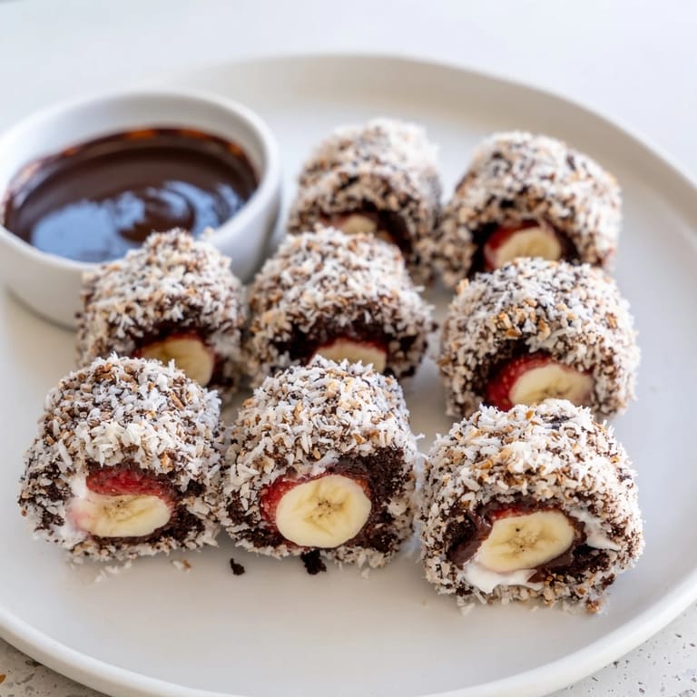 What makes this recipe brilliant is the textural contrast: you bite into the crumbly Oreo shell, hit the creamy coconut layer, then the soft banana, and finally dip it in rich chocolate. It's familiar enough that people immediately understand it as sushi, but surprising enough that it sticks in their memory. The joke-meets-craft nature of it takes pressure off and makes it fun to serve.