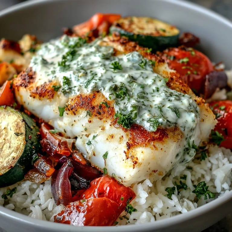 - Divide the fluffy rice among bowls, top each with a portion of roasted vegetables and a golden fish fillet, then drizzle the lemon sauce over everything. A little extra fresh parsley on top makes it look intentional.