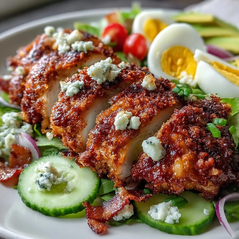 Save My neighbor brought this salad to a spring potluck on a whim, and I watched people return to the table three times just for the chicken. She'd baked it instead of frying, which meant no grease-splattered stovetop and somehow an even crispier crust. That golden, shattering Parmesan coating over tender thighs completely changed how I think about salads—suddenly they weren't side dishes anymore, but the main event.