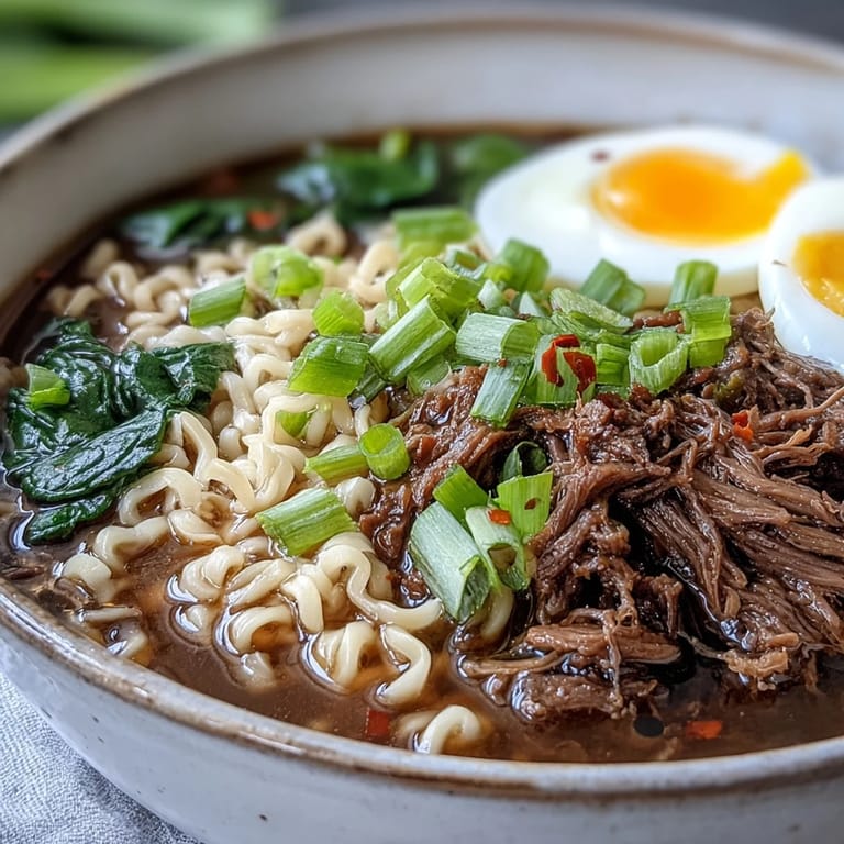 Save The smell of ginger and sesame oil filling the house on a slow Sunday morning is one of those small domestic joys I've come to treasure. My partner stumbled into the kitchen, rubbing sleep from their eyes and asking what smelled so incredible. That's when I knew this slow cooker ramen was going to become a regular rotation in our home.