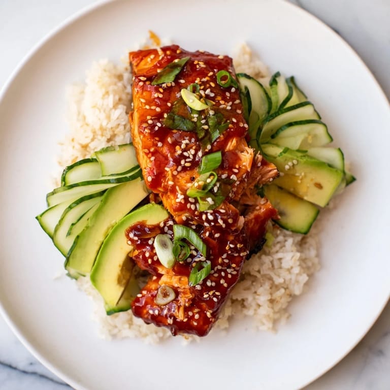 Every element serves a purpose beyond just filling your plate. The warm rice absorbs the glaze, the cold avocado provides richness, the cucumber brings clean crispness, and the nori adds a subtle brininess that ties everything together. It's not a random assortment of toppings—it's a conversation between flavors and textures. Once you understand why each piece matters, you stop thinking of this as a recipe and start thinking of it as a formula you can riff on endlessly.
