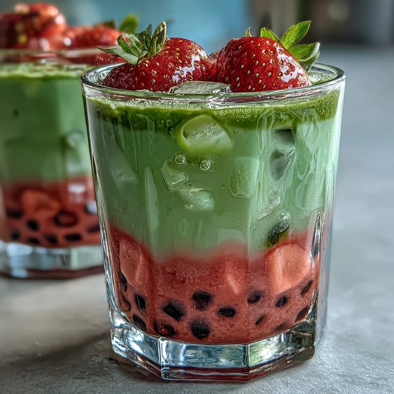 This drink lives in a beautiful tension between three different taste experiences: the sweet-tart brightness of strawberry, the creamy sweetness of the milk layer, and the earthy, slightly bitter sophistication of matcha. Without the lemon juice in the strawberry purée, the drink tips too far into sugar territory and loses its sophisticated edge. The matcha needs that strawberry tartness to feel balanced rather than overpowering, and the chewy boba pearls add a textural surprise that makes you actually want to keep drinking instead of just gulping it down. It's the kind of drink that tastes thoughtful, like someone paid attention to how all the pieces work together.