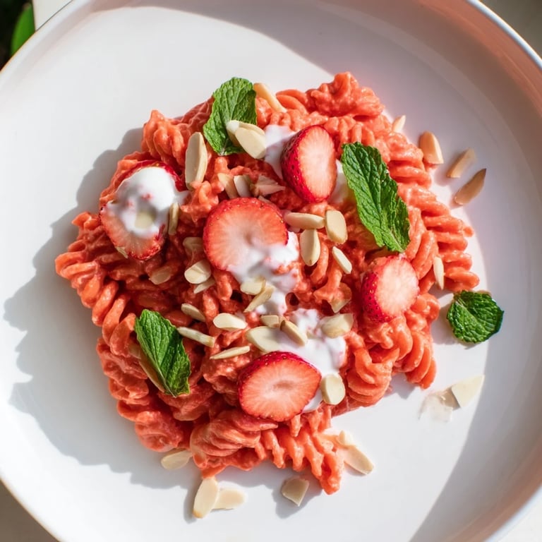 Save I discovered this dish completely by accident on a sweltering afternoon when my fridge felt too full and my appetite too small for anything heavy. I had leftover Greek yogurt that needed using, a punnet of strawberries softening on the counter, and a box of pasta I'd grabbed without thinking. Out of sheer curiosity—and maybe a little kitchen boredom—I wondered what would happen if I treated pasta like a canvas instead of a side. The result was so unexpectedly lovely that I've made it every summer since, usually when friends drop by unannounced and I want something that feels both indulgent and refreshing.