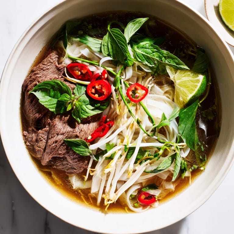 Chicken works just as well as beef, and I've used thinly sliced pork shoulder when that's what I had. For a vegetarian version, swap in firm tofu and use vegetable broth—add a little extra soy sauce and maybe a dash of mushroom powder to keep the umami strong. The herbs and lime will carry most of the flavor anyway.